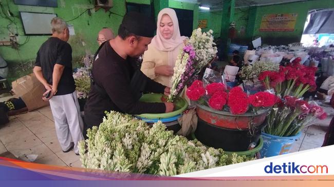 Harga bunga sedap malam di Pasar Bunga Rawa Belong, Jakarta Barat (Jakbar), mengalami kenaikan menjelang malam takbiran. Meski harga bunga naik, masyarakat tetap untuk membeli, salah satunya Irma (27). Irma menuturkan wangi bunga sedap malam di ruang tamu rumahnya menjadi tradisi dari tahun ke tahun di malam takbiran. "Iya tiap tahun mesti beli, sudah tradisi keluarga. Biasanya beli sama mawar juga biar, ada warnanya," kata Irma saat ditemui di Pasar Bunga Rawa Belong, Jakarta Barat, Selasa (9/4/2024).